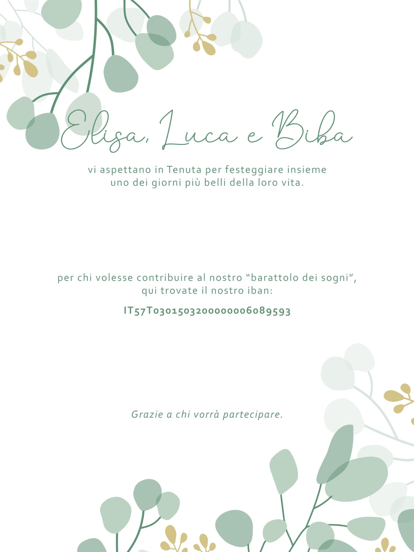 Se voleste farci un pensiero, l'Iban indicato sulle partecipazioni è intestato a BERTOJA Elisa